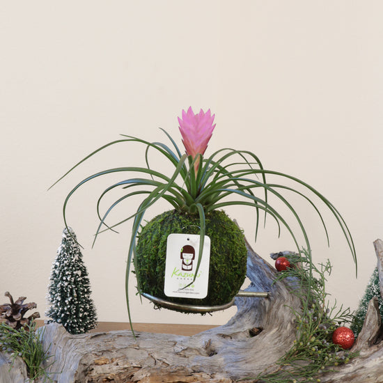 Bromeliad Pink Quill | Moss Ball Kokedama