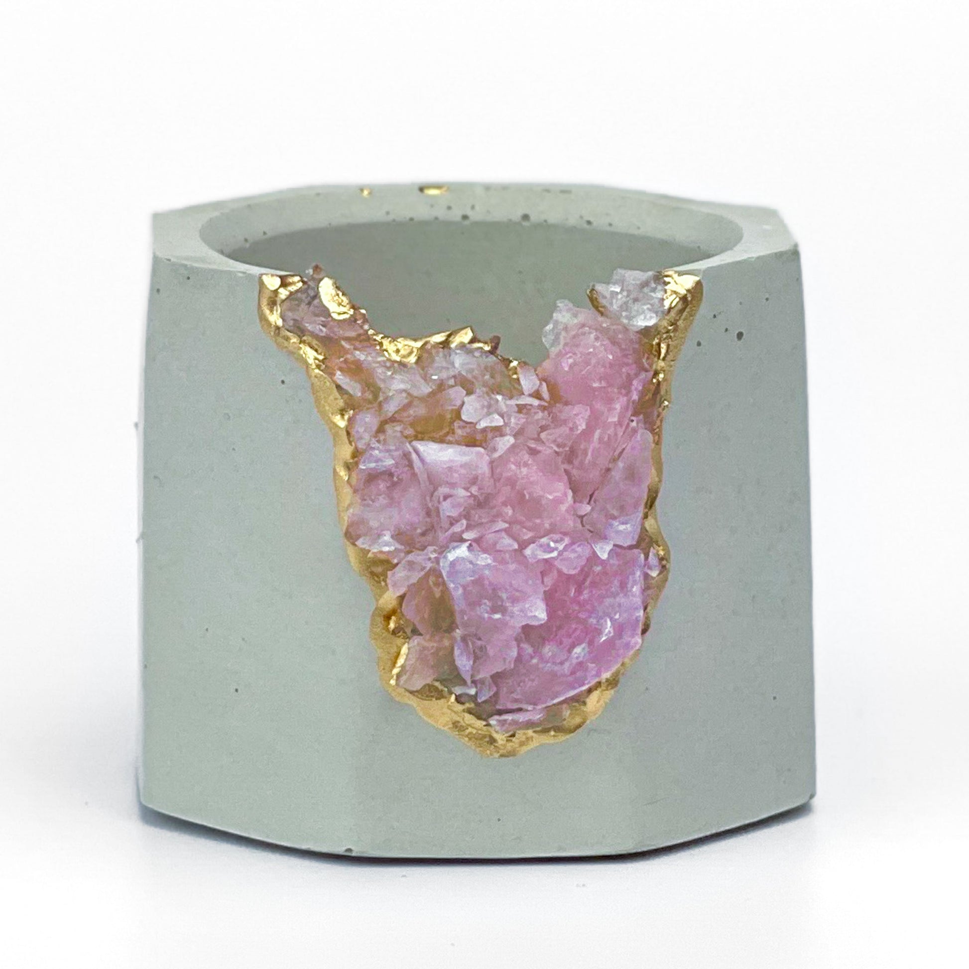 You will love our eye-catching gold colored concrete geode planters! The concrete has a super smooth finish, which makes it visually appealing.